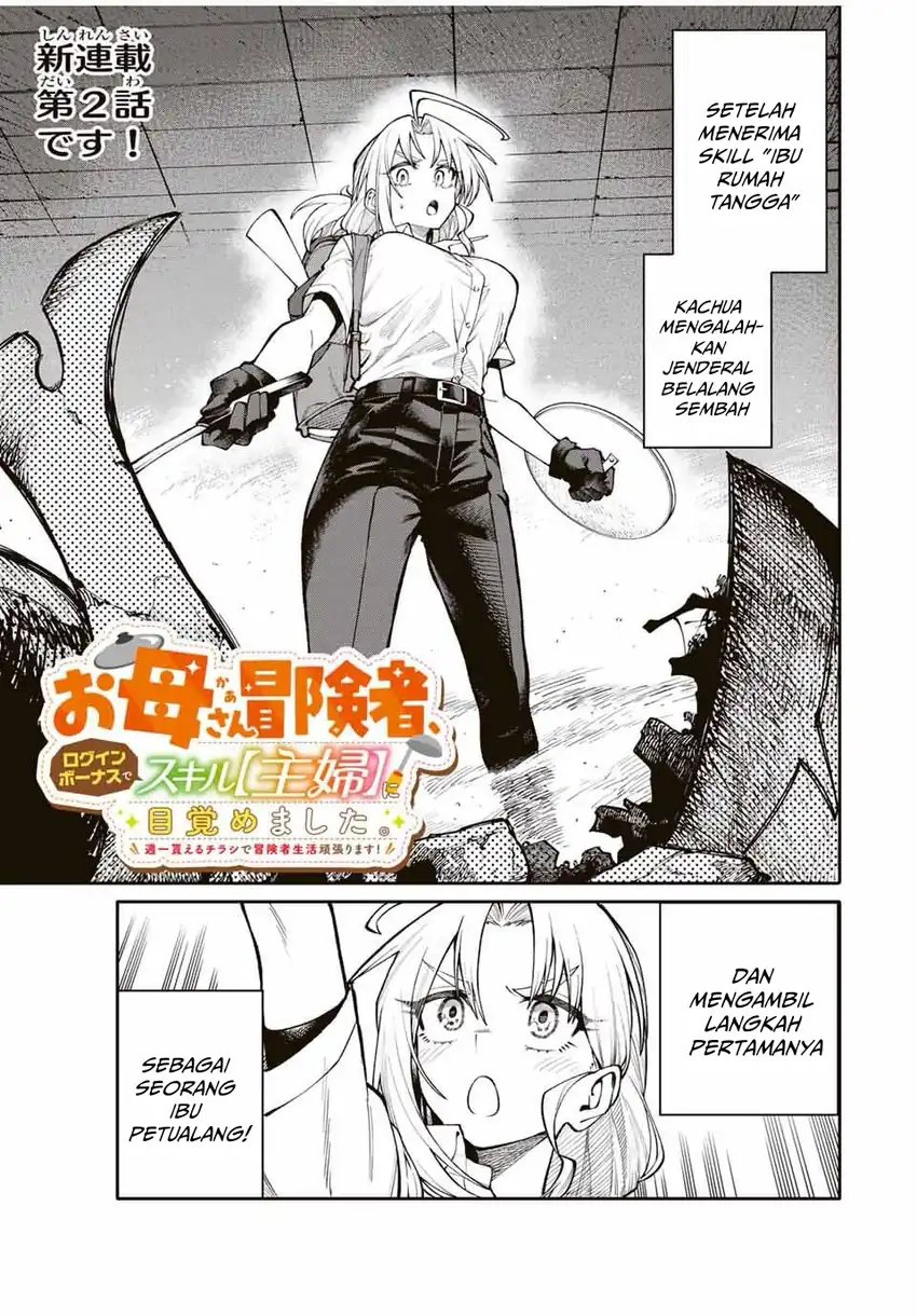Okaasan Boukensha, Login Bonus de Skill [Shufu] ni Mezamemashita. Shuuichi Moraeru Chirashi de Boukensha Seikatsu Ganbarimasu! Chapter 2 Bahasa Indonesia