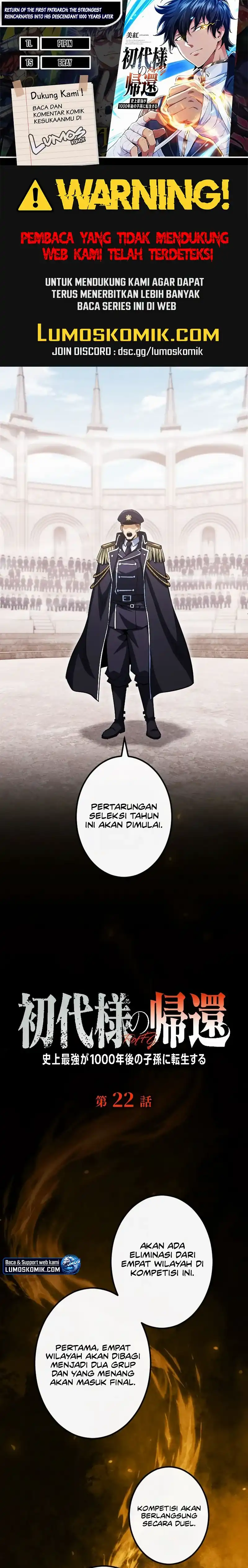 Baca Return of the First Patriarch: The Strongest Reincarnates into His Descendant 1000 Years Later Chapter 22 Bahasa Indonesia | Baca Komik