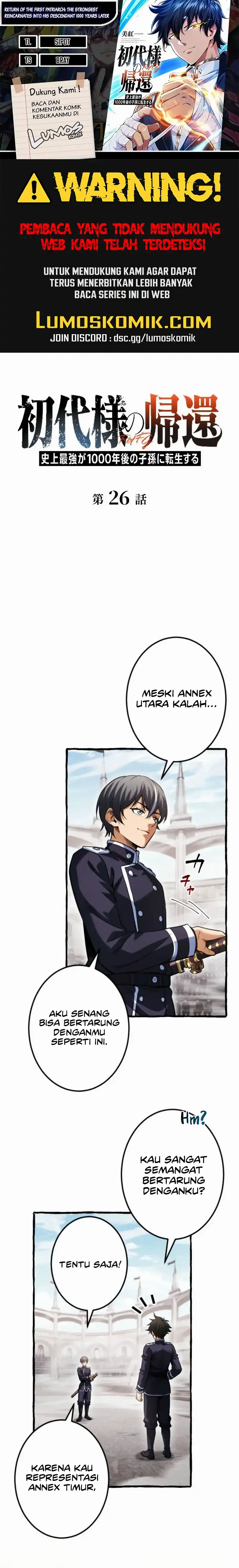 Return of the First Patriarch: The Strongest Reincarnates into His Descendant 1000 Years Later Chapter 26 Bahasa Indonesia